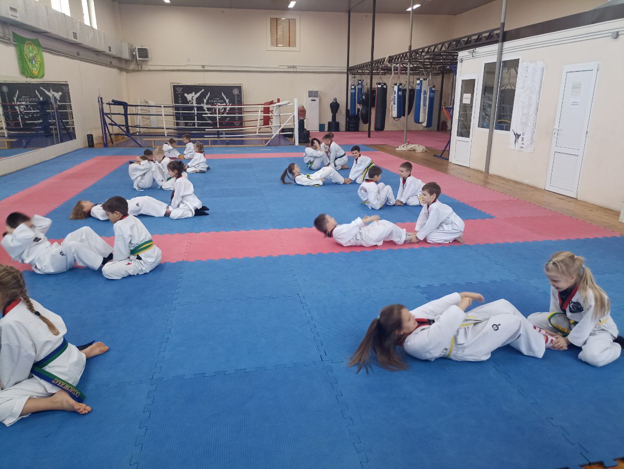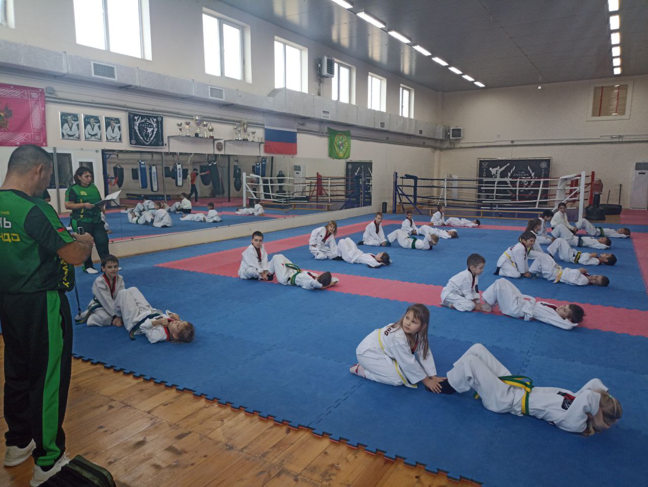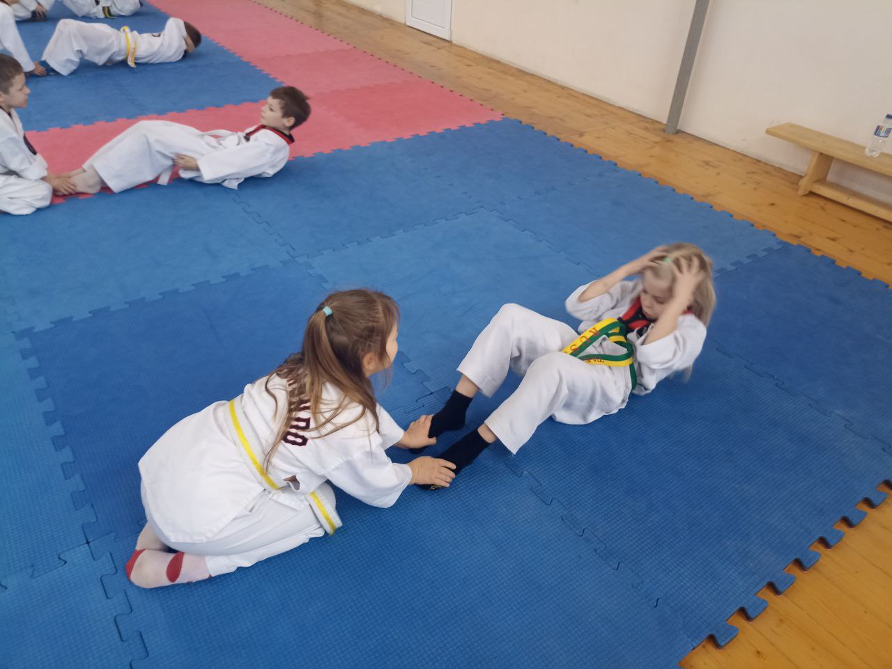 Тхэквондистам в возрасте от 6 до 13 лет предлагалось выполнить следующие виды тестов: сгибание и разгибание рук в упоре лежа на полу , наклон вперёд на гимнастической скамье, прыжок в длину с места толчком двумя ногами, поднимание туловища из положения лёжа на спине. Практически все спортсмены справились с заданиями успешно - организованно, оперативно и ради лучших показателей. Здесь не было проигравших и победителей. Каждый работал на собственный результат. Как позволит погода, спортсменов ждут беговые тесты на выносливость.