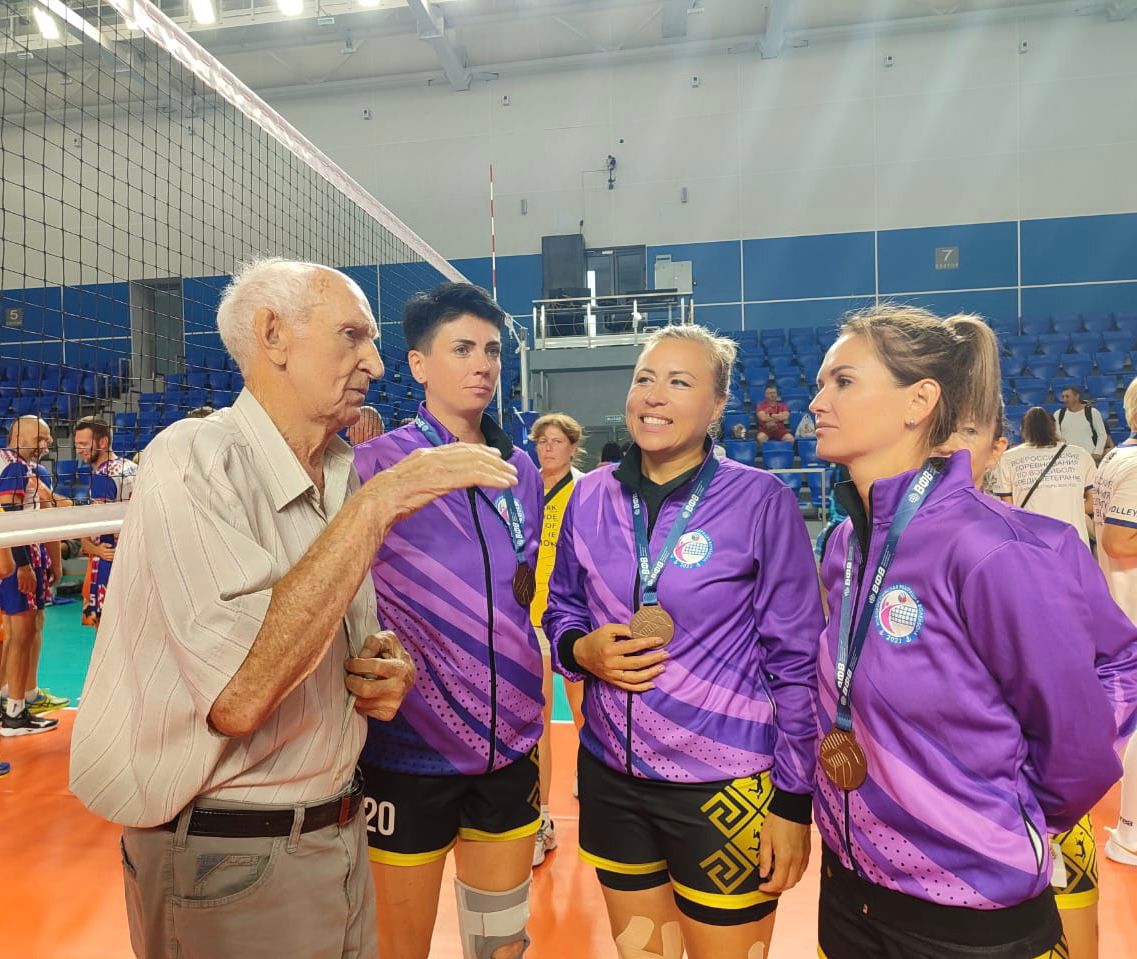 Награду команде Олеси Денисенко вручал человек-легенда - советский тренер по волейболу, российский спортивный функционер, первый президент ВФВ, заслуженный тренер СССР Валентин Васильевич Жуков (87 лет).
