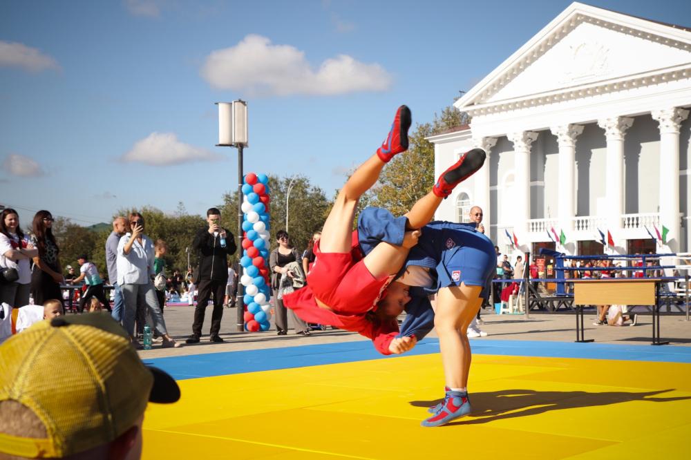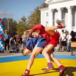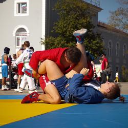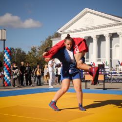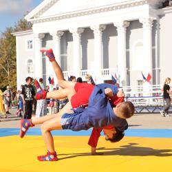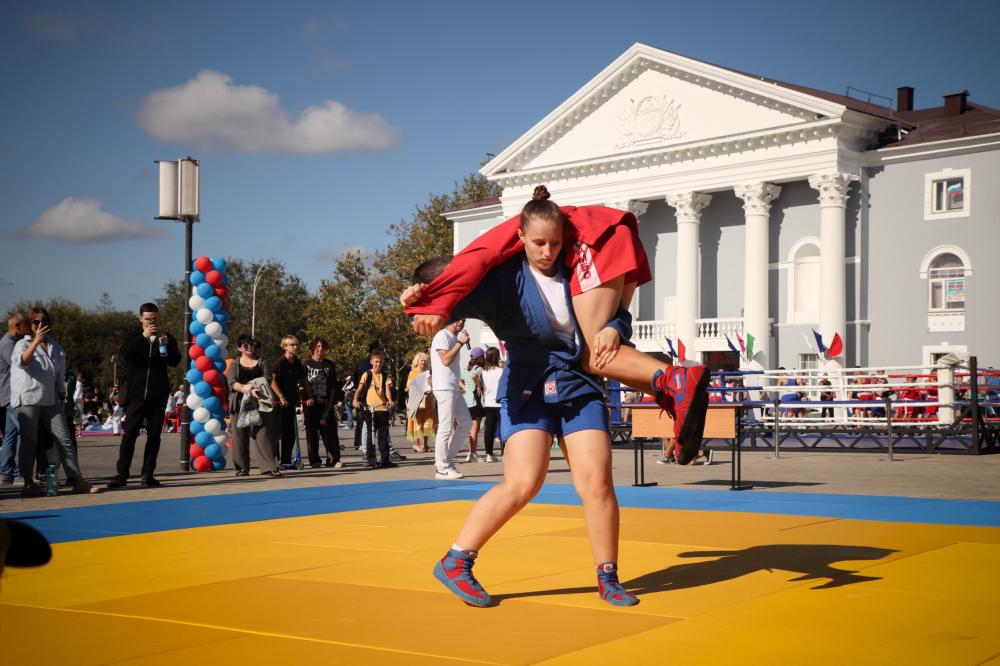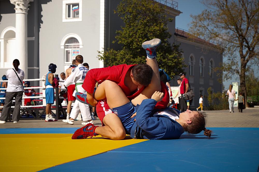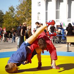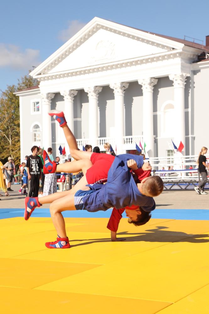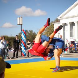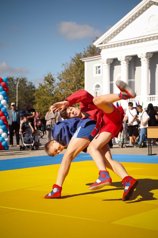 Дзюдоисты и самбисты спортшколы "Виктория" показали детворе и взрослым красивые приемы и броски, а также элементы базовой техники дзюдо в рамках фестиваля для подростков и молодежи "Район спортивных достижений", который прошёл 5 октября на площади Труда.