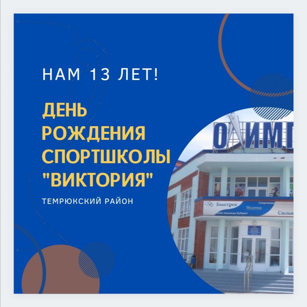 Вот уже на протяжении 13 лет двери спортшколы "Виктория" открыты для девчонок и мальчишек, желающих заниматься спортом. Несмотря на молодость, спортшкола уже достойно заявила о себе, постоянно шагает вперед и ни дня не стоит на месте! У истоков многих спортивных достижений темрюкских спортсменов, стоит СШ "Виктория", подтверждая высокий уровень на муниципальных, краевых, всероссийских и международных соревнованиях. За последние пять лет спортшкола дважды занимала второе место победного пьедестала, и один раз была шестой в рейтинге Министерства физической культуры и спорта края.