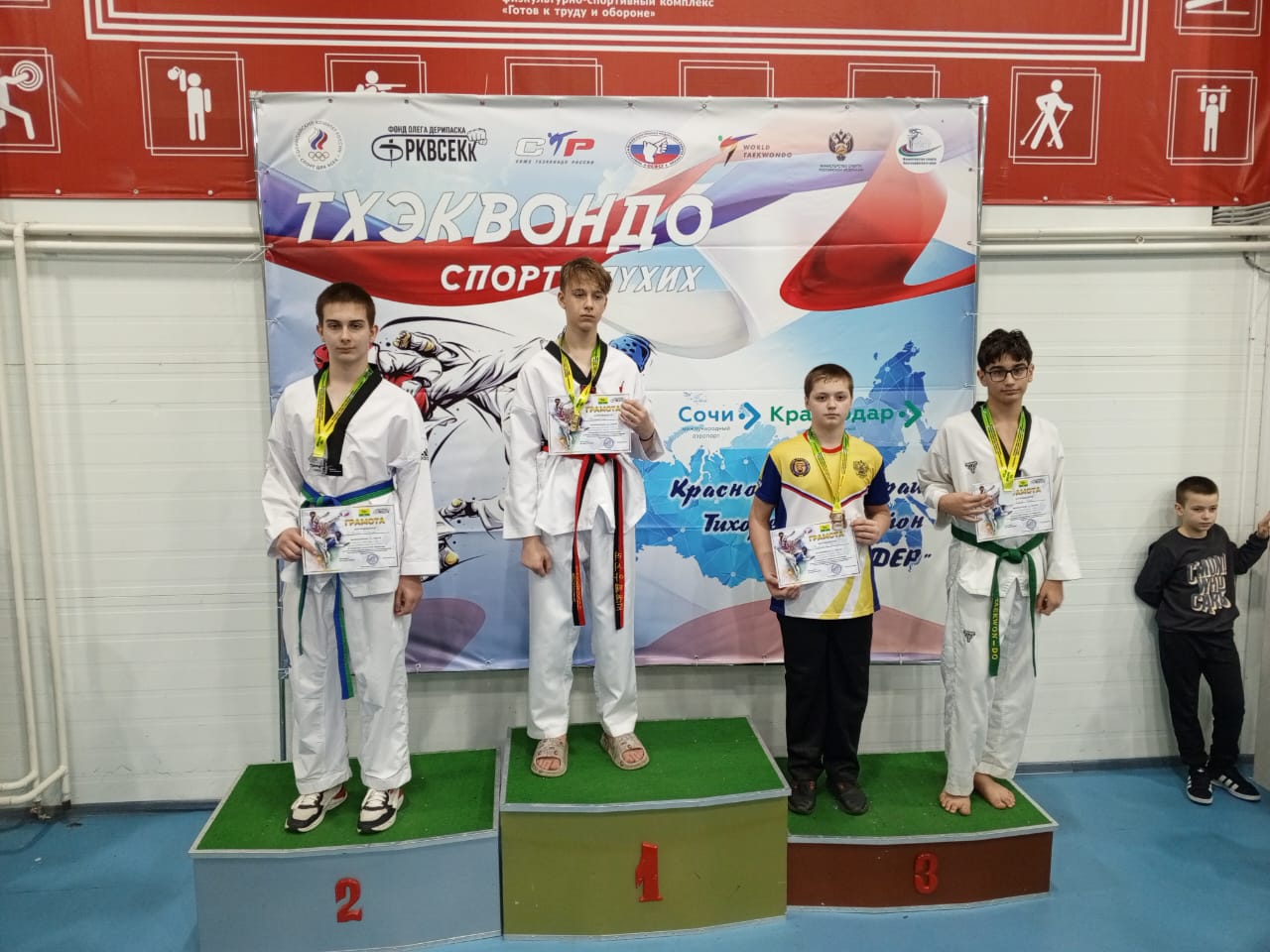 С 24 по 26 ноября в станице Архангельской проходил открытый турнир среди юношей и девушек на призы Фонда развития медицины и контактных видов спортивных единоборств Краснодарского края Олега Дерипаска по олимпийскому виду спорта – тхэквондо. Соревнования привлекли более 350 спортсменов из самых разных регионов России. Темрюкский район представляли подопечные тренеров Михаила Ленчевского и Целуйко Тимофея.