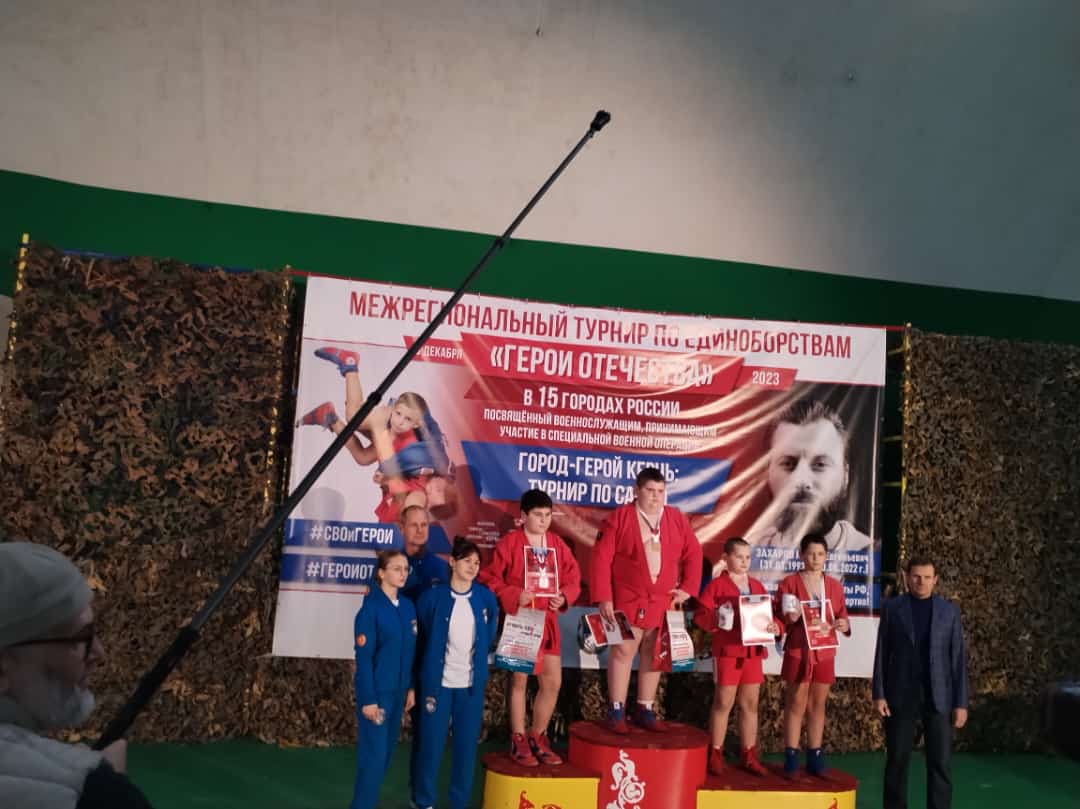 9 декабря в Керчи прошёл Межрегиональный турнир по самбо "Герои Отечества" среди юношей и девушек. Спортсмены из Евпатории, Ялты, Керчи, Анапы сплотились, чтобы отдать дань погибшим Героям России и чествовать живых Героев Отечества. Темрюкский район представляли воспитанники спортшколы "Виктория" под руководством тренеров Романа Ковальчука, Адама Абиева и Бахтовара Каримова.