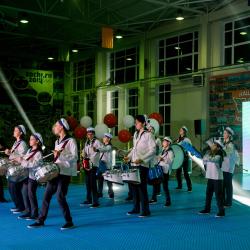 ОБРАТНЫЙ ОТЧЕТ И ШОУ БАРАБАНОВ Обратный отсчет на светодиодном экране открыл череду торжественных поздравлений. Ритм празднику задавал ансамбль барабанщиков. Это было только началом, но началом весьма зрелищным!