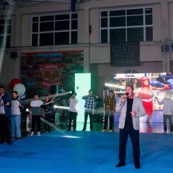 ГИГАНТСКИЙ МЕДИА-ЭКРАН И ФОТОСТЕНА ПОЧЁТА Подготовка к празднованию велась давно и основательно. К этой важной дате зал спорткомплекса "Олимп" преобразился до неузнаваемости! Самым ярким в техническом плане событием вечера стал, естественно, гигантский светодиодный экран, на котором демонстрировались динамичные поздравительные видео-ролики. Приятным сюрпризом для гостей стала фотостена, где спортсмены и тренеры могли найти кадры с самых ярких и запоминающихся соревнований или тренировочных мероприятий.