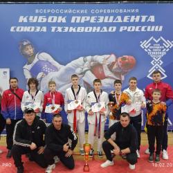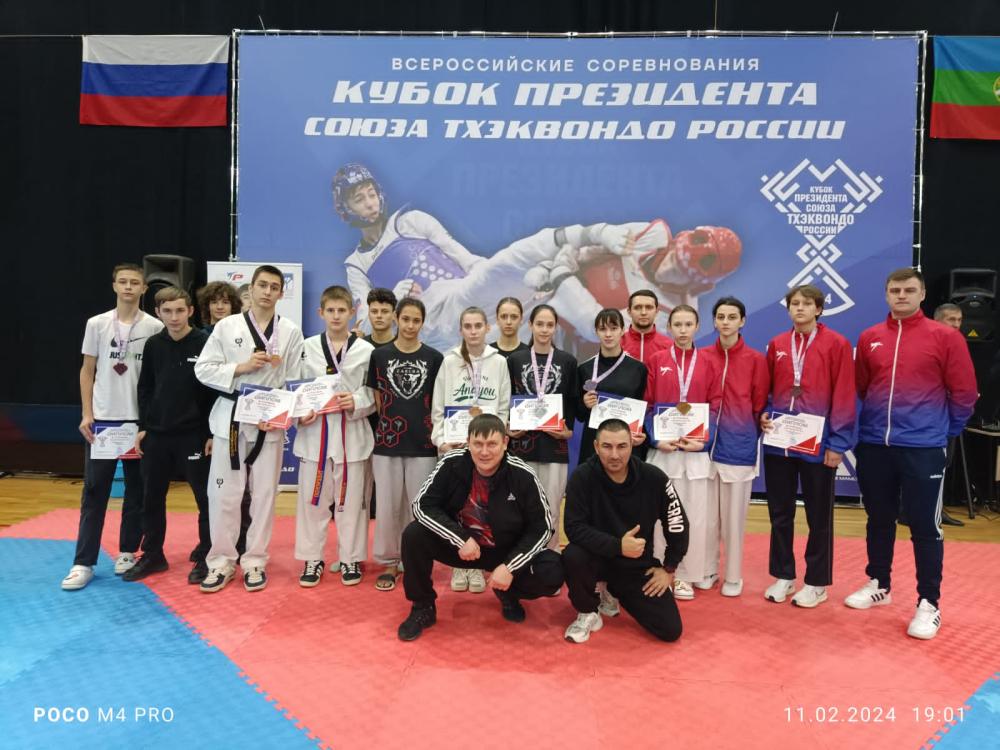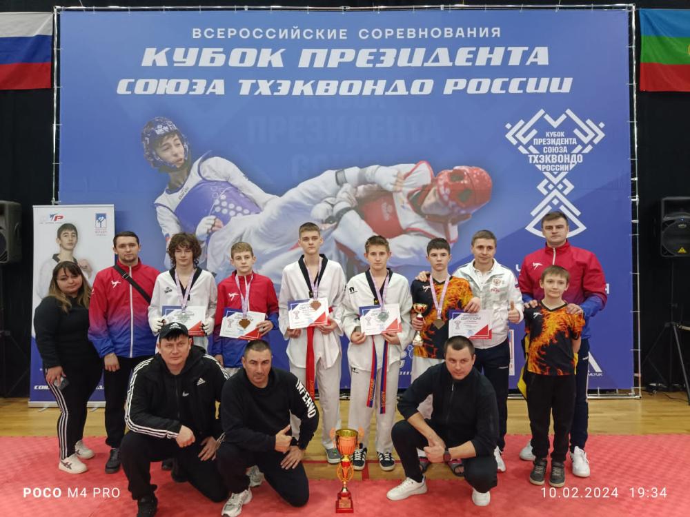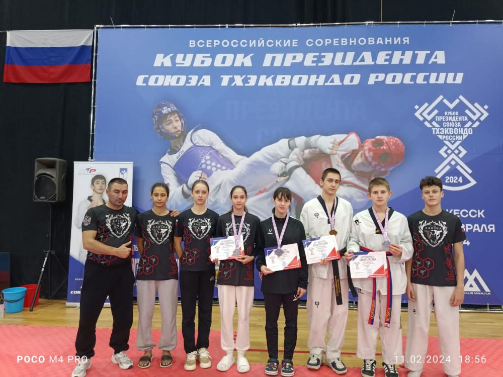 Четыре медали и бронзовый Кубок в составе краевой команды завоевали тхэквондисты спортшколы "Виктория" на Кубке президента Союза тхэквондо России