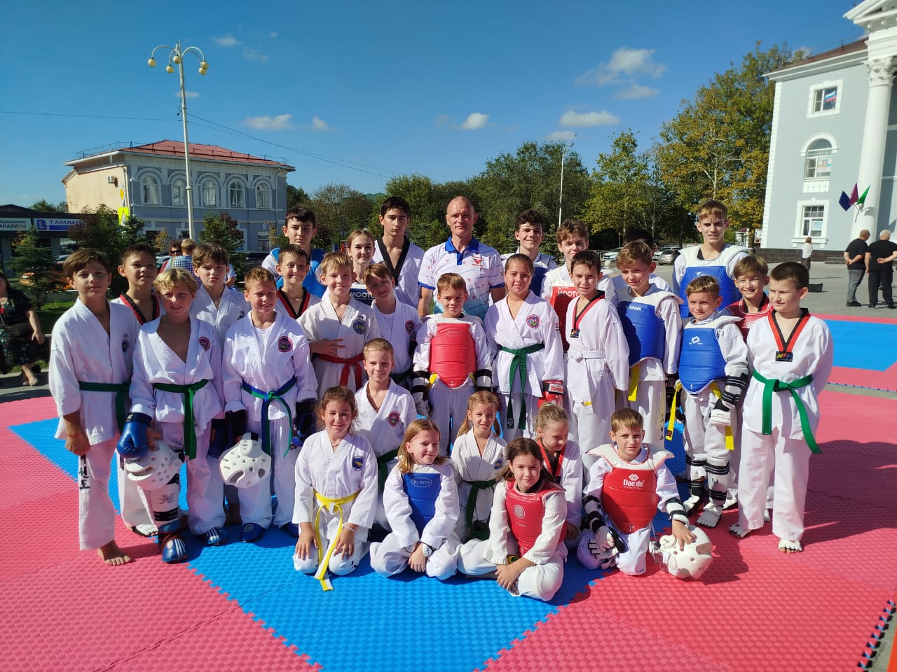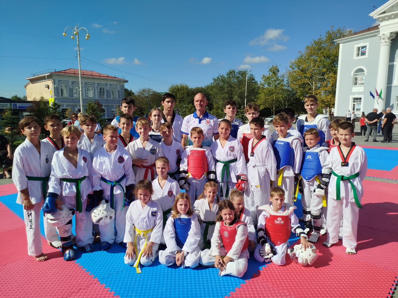 Каждый бой на додянгах, расстеленных в центре Темрюка на площади Труда, был настоящим искусством: воспитанники тренера Михаила Ленчевского демонстрировали невероятную технику, волю к победе и уважение к соперникам.