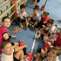 В завершение тренировки по доброй традиции состоялась сладкая эстафета, которую дети очень любят. Ещё одним приятным сюрпризом для всех стало вручение новогодних подарков.