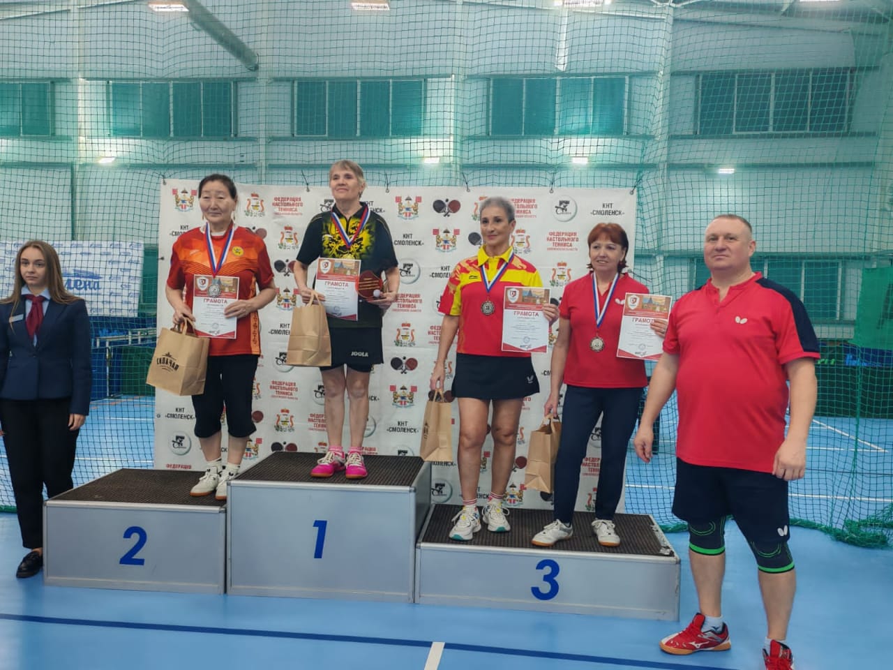 Тренер спортшколы "Виктория" Галина Соколова, выступающая в составе сборной Краснодарского края продемонстрировала, как всегда, бескомпромиссную и остроатакующую игру. В личном первенстве в возрастной группе женщин 65-69 лет Галина Владимировна стала бронзовой призеркой соревнований.