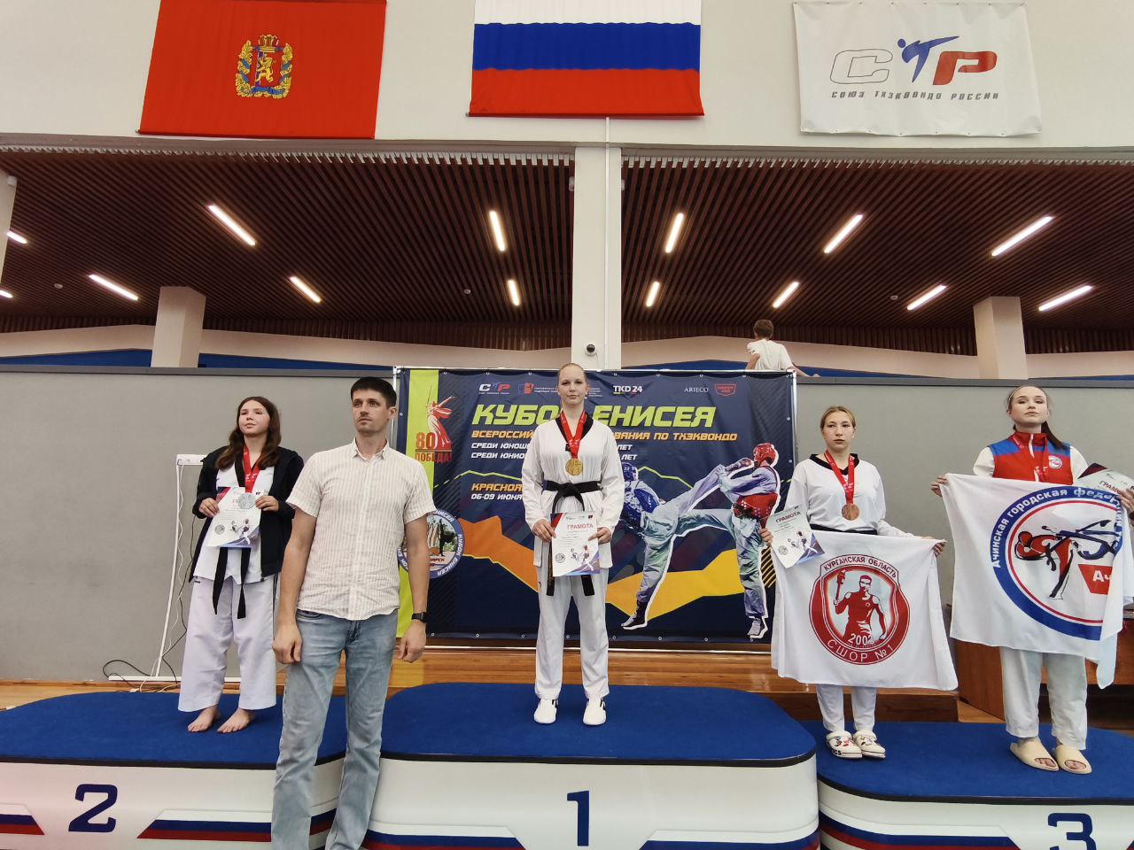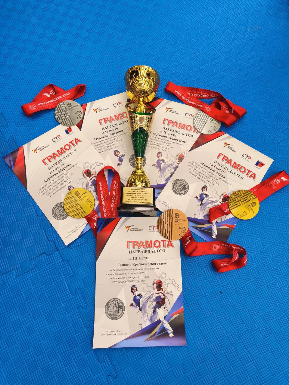 6-8 июня в Красноярске прошли Всероссийские спортивные соревнования по тхэквондо ВТФ "Кубок Енисея" среди юниоров и юниорок 15-17 лет. За награды соревнований сражались более 300 тхэквондистов из 12 регионов России. Всего было разыграно 20 комплектов медалей. В составе сборной команды Краснодарского края выступали трое тхэквондистов спортшколы "Виктория".