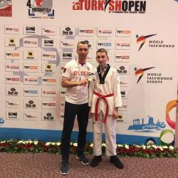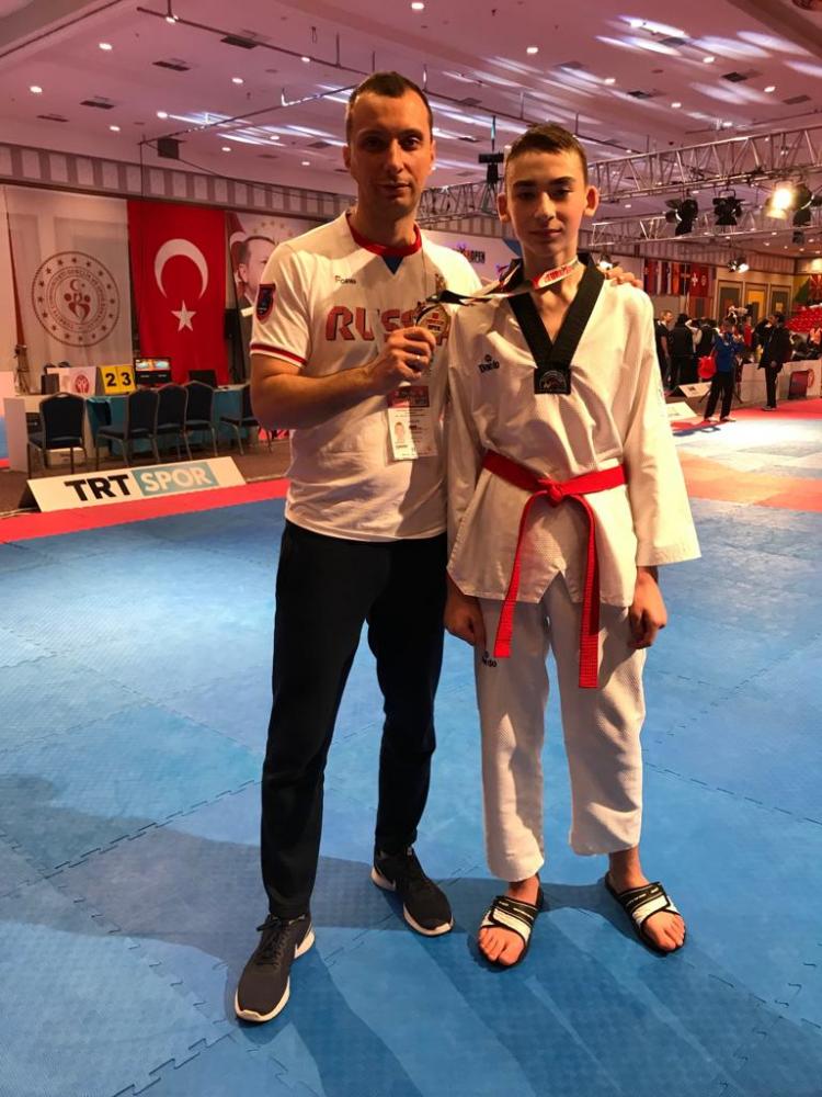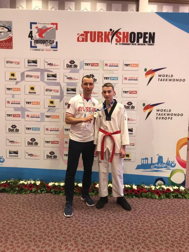 По итогам выступления команды Спортивной школы «Виктория» на крупном международном турнире по тхэквондо 4-th WT President s Cup 2019 - European Region Турция, г.Белек. Победу празднует воспитанник Александра Александровича Дробышевского.