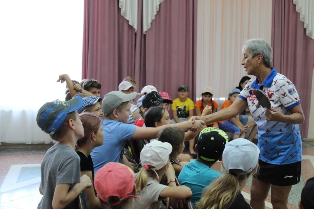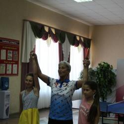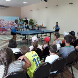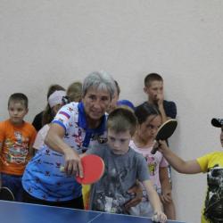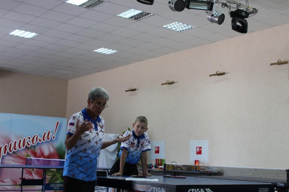 Вместе с внуком, Залевским Григорием, членом сборной Краснодарского края, они познакомили детвору с этим увлекательным игровым видом спорта, дали возможность каждому ребёнку прикоснуться к ракетке и мячу, к этой игре, к спорту, а также провели мастер-класс и устроили показательные выступления. Дети с интересом включились в процесс ознакомления ис удовольствием принимали участие в опробовании своих способностей, проявляя огромное желание и активность.После практических занятий мальчишкам и девчонкам показали видеоролик о «Спортивной школе «Виктория» и об отделении настольного тенниса.