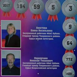За 35-летнюю историю темрюкской гребли тренерами Николаем Перепечаевым и Еленой Хвостовой было подготовлено 9 мастеров спорта, 64 кандидата в мастера спорта, 1459 массовых юношеских разрядов, 772 массовых спортивных разрядов. Спортсмены становились участниками и призерами 3-х чемпионатов мира, 5-ти международных соревнований, 59-ти чемпионатов России, 194-х всероссийских соревнований, более 2000 краевых соревнований.