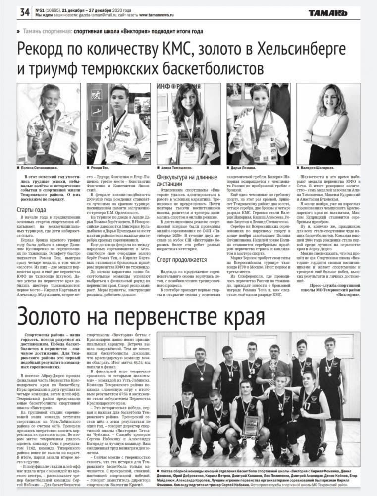 Рекорд по количеству КМС, золото в Хельсинборге и триумф темрюкских баскетболистов: спортивная школа "Виктория" подводит итоги года в свежем выпуске газеты "Тамань"