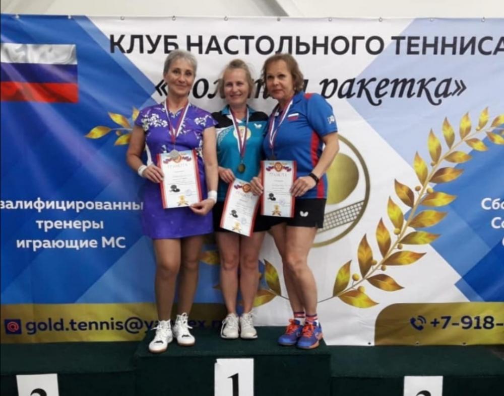 Спортивное мастерство и волю к победе Галина Соколова проявила и на соревнованиях по настольному теннису среди женщин в зачет физкультурно-массовых мероприятий "ГОТОВ к ТРУДУ и ОБОРОНЕ - 2021". Районные соревнования прошли в первые майские дни в Темрюке, в СК "Скиф". На этот раз медальный актив тренера Галины Соколовой пополнился "золотом".