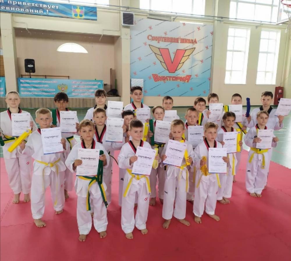 30 мая в СК "Олимп" в станице Голубицкой прошла выездная аттестация воспитанников отделения тхэквондо СШ "Виктория". Двадцать юных тхэквондистов из Темрюка успешно справились со всеми пунктами аттестации и получили желтые пояса: