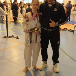 Среди кадетов 2007-2009 года рождения прекрасный результат показала Анна Бессонова. Эта девушка с сильным характером и большой волей к победе смогла завоевать серебряную медаль турнира! На пути к заветной цели, Аня, будучи самой младшей в своей возрастной категории, уверенно прошла двух более старших и опытных спортсменок, одна из которых обладательница черного пояса и первого пума. Однако в третьем бое темрючанка уступила сопернице из Ставрополя. В результате - заслуженное второе место турнира.