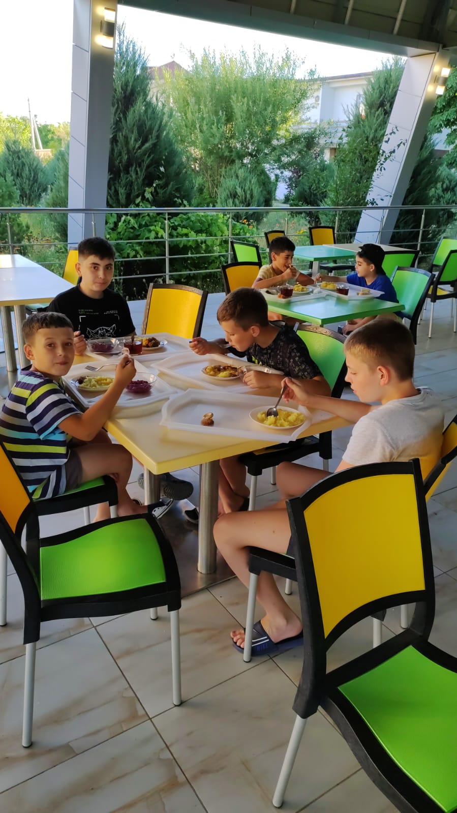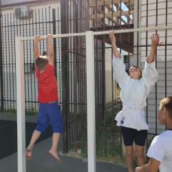Тренируются ребята по три раза в день. Ранним утром борцы бегут на море, где проводят зарядку с элементами кроссфита. Атмосфера пляжа и морского воздуха позволяет спортсменам максимально сосредоточиться на занятиях. Перед обедом ребята отправляются для водных процедур в бассейн. Дневные и вечерние тренировки тренер Чергесхан Чегуев посвящает доскональному разбору техники и приемов дзюдо. После ужина ребят ждут командные игры в волейбол и баскетбол. Насыщенность программы позволила сделать тренировочный процесс разноплановым и интересным.