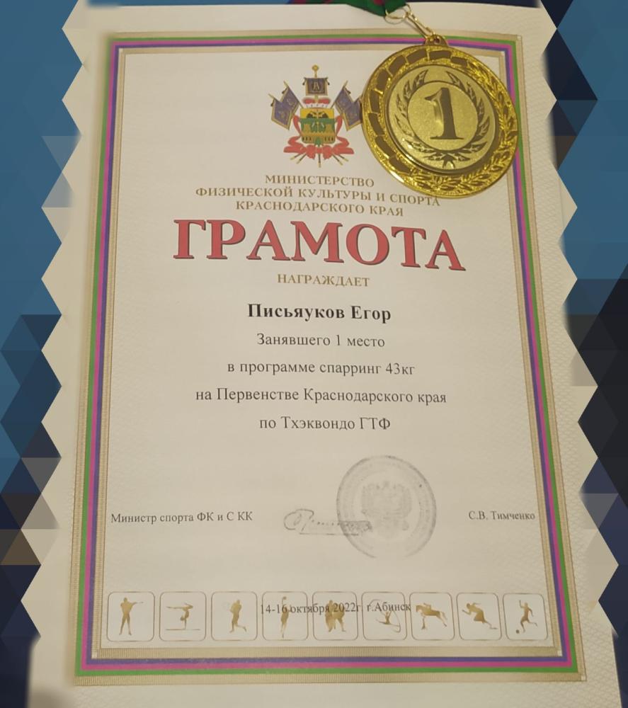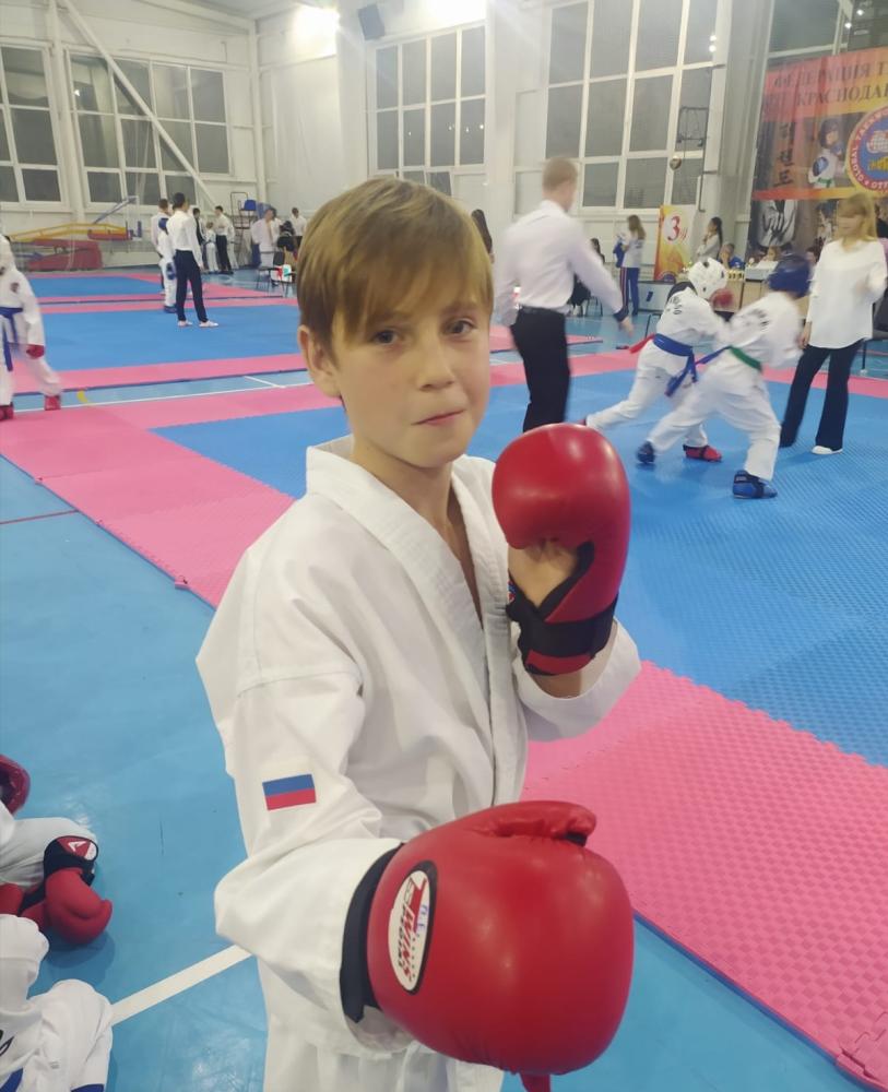 И вот оно - долгожданное золото первого соревновательного дня! Егор Письяуков, оставив позади сильных спортсменов со всей Кубани, стал победителем в программе спарринг и завоевал золотую награду в своей возрастной и весовой категории.