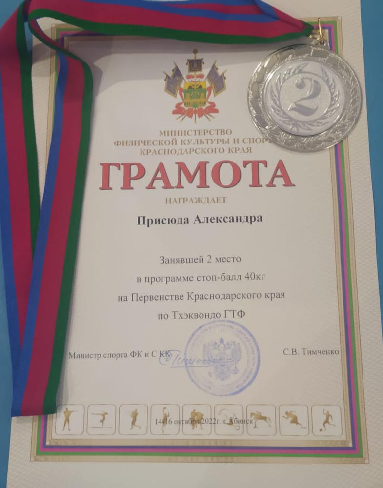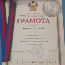 Второй соревновательный день принёс в актив темрюкской команды серебряную медаль. Её завоевала, уверенно пройдя по турнирной сетке, тхэквондистка Александра Присюда, выступавшая в программе стоп-балл.