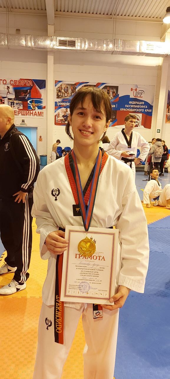 Плодотворной получилась поездка на Первенство Кубани у темрюкских тхэквондистов: из четырех спортсменов двое вернулись в ранге триумфаторов. Воспитанники тренера Георгия Кекелидзе упорно отстаивали честь нашего района, смело и уверенно выходя на додянг. И вот он - почетный пьедестал! Анна Бессонова, выступая среди кадетов до 51 кг, проявила все свои лучшие качества и победила очень уверенно, с большим запасом. Итог - "золото" турнира. Вторую медаль высшей пробы принес в копилку темрюкского спорта Владимир Широков, который без проблем прошел по сетке своей категории (63 кг) и в финале решающим ударом смог вырвать победу у своего оппонента.