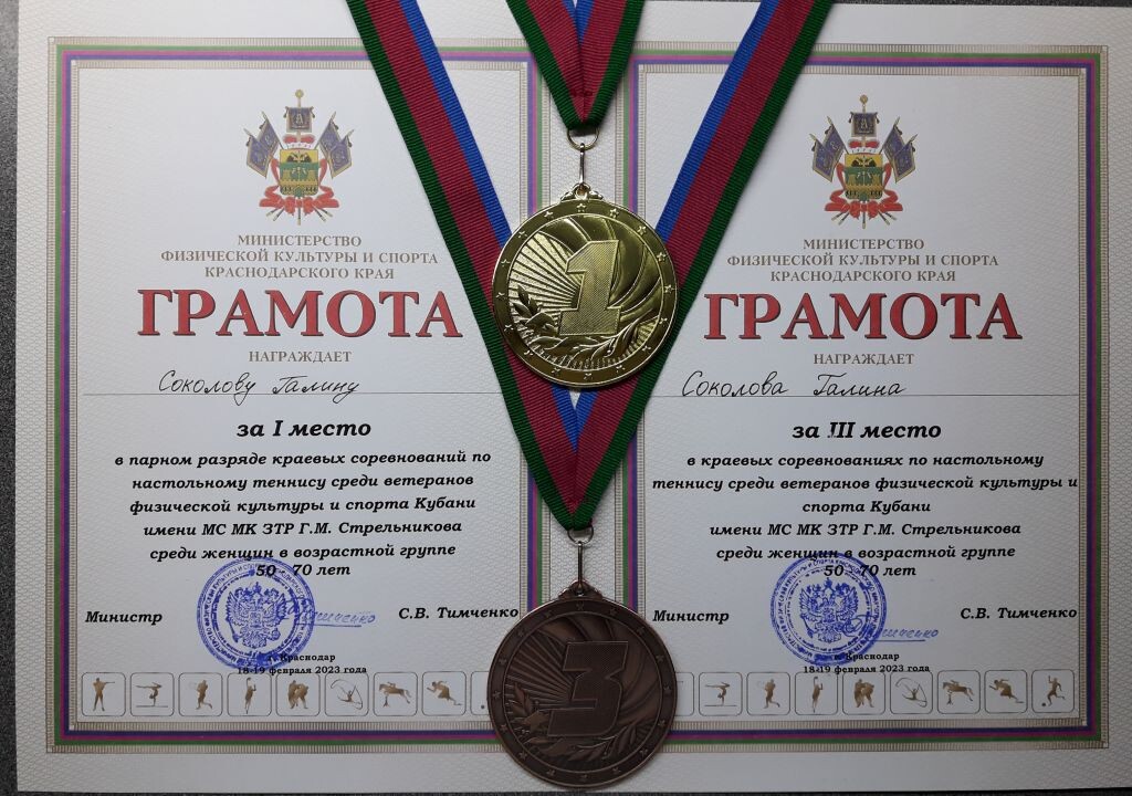 Ярким было выступление тренера спортивной школы "Виктория" Галины Соколовой, единственной представительницы Темрюкского района, несмотря на то, что все соперницы были намного моложе. Разница в возрасте достигала 15 лет, что составило значительную трудность в борьбе за медаль. По итогам турнира Галина Соколова завоевала сразу две медали турнира: "золото" в парном разряде и "бронзу" в одиночном разряде среди женщин от 50 до 70 лет.