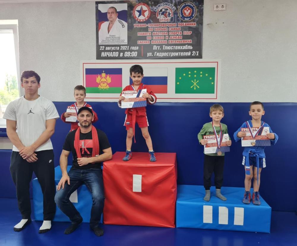 30 апреля в Тлюстенхалбе, в республике Адыгее, прошёл открытый клубный турнир по самбо КСЕ "Комсомолец-СПОРТ", посвящённый Дню Победы среди юношей 2010-2011 годов рождения, 2012-2013 годов рождения 2014-2015 годов рождения, 2016 года рождения и младше. На ковёр выходили не только самбисты со стажем, но и не очень опытные спортсмены.