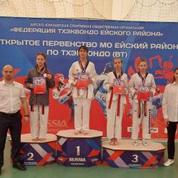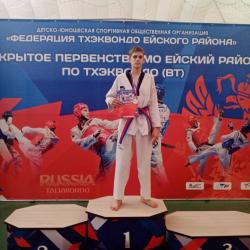 В Ейске состоялось открытое первенство Ейского района по тхэквондо (ВТ) среди юношей и девушек, а также фестиваль цветных поясов "TAEKWONDO KIDS" по тхэквондо (ВТ) среди мальчиков и девочек. Ежегодно в турнире, организованном в спортивном комплексе "Солнечный", принимают участие порядка четырехсот тхэквондистов из разных городов и районов региона. В их числе воспитанники спортшколы "Виктория".