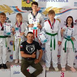 Воспитанники тренера Георгия Кекелидзе 1 место Саглай Кира 28 кг, 1 место Попучиев Степан 53 кг, 2 место Кандалов Савелий 45 кг, 3 место Дидиух Кристина 37 кг, 3 место Пирогов Егор 65+ кг.