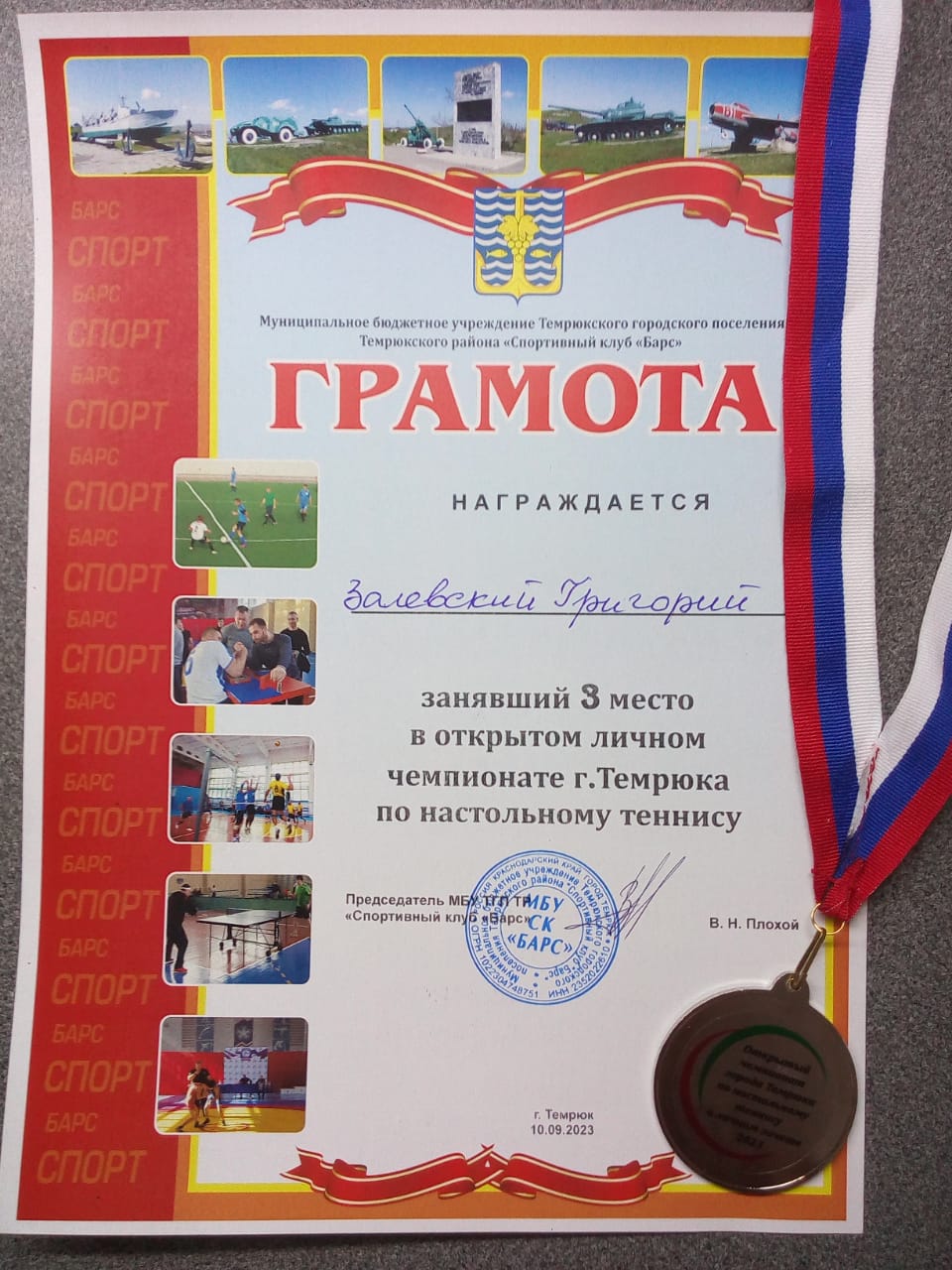 Безупречные выступления во всех восьми турах позволили теннисисту спортшколы "Виктория" Григорию Залевскому обойти многих именитых соперников. В финале Гриша поставил красивую точку в общем зачете, став бронзовым призёром соревнований.