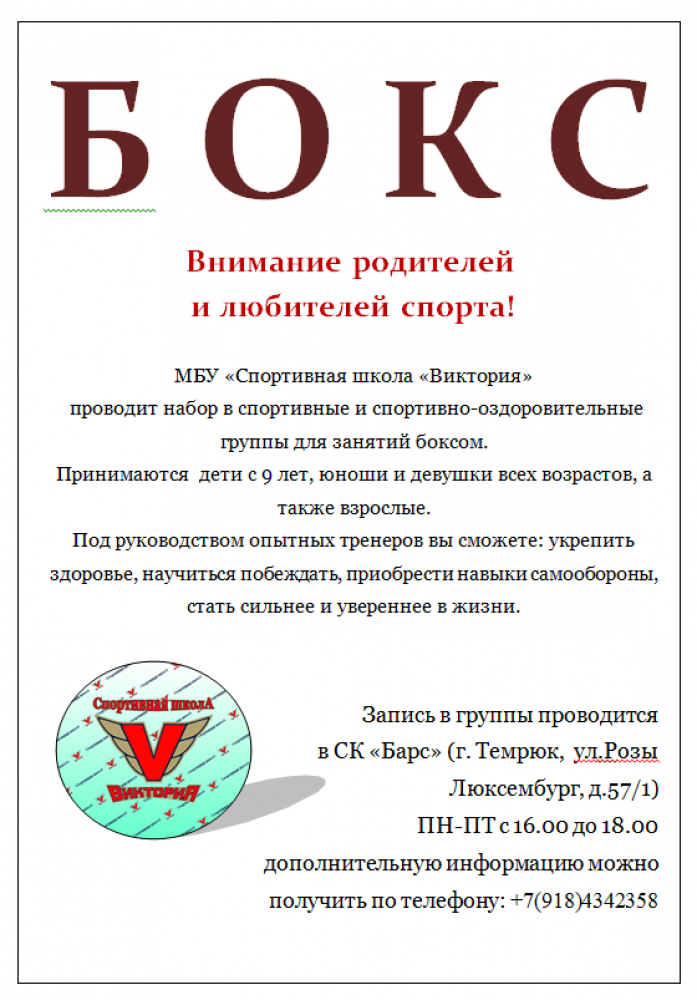 Спортивная школа ВИКТОРИЯ муниципального образования Темрюкский район