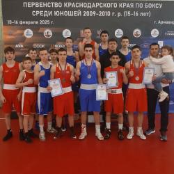 ![]() 10-16 февраля в Армавире проходило Первенство Краснодарского края по боксу среди юношей 15-16 лет (2010-2009 г.р.). Продемонстрировать свой характер, выносливость, волю к победе собрались 211 спортсменов из 35 муниципальных образований Краснодарского края. Почувствовать сладкий вкус победы и получить боевой опыт отправились в Армавир боксеры спортшколы "Виктория". Яркие и зрелищные поединки юных темрюкских спортсменов принесли в копилку районного спорта четыре медали |
